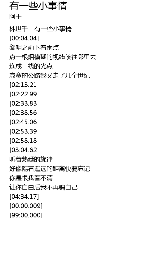 | [00:00.64] | 林世千 - 有一些小事情 |