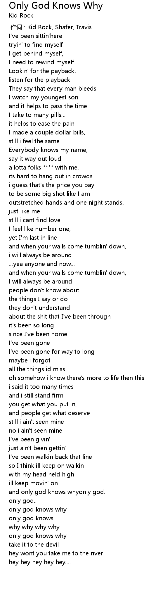 | [00:00.00] | 作词 : Kid Rock, Shafer, Travis |
