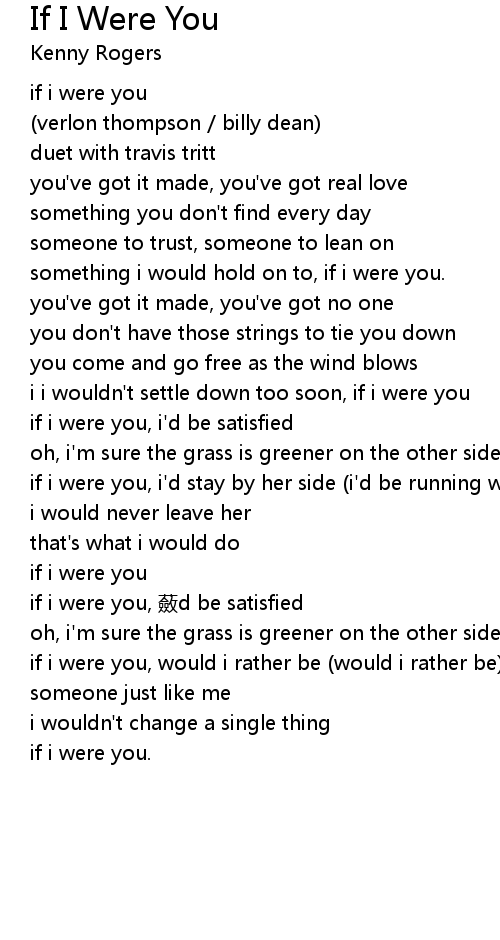 | if i were you, i'd stay by her side (i'd be running wild) | |
