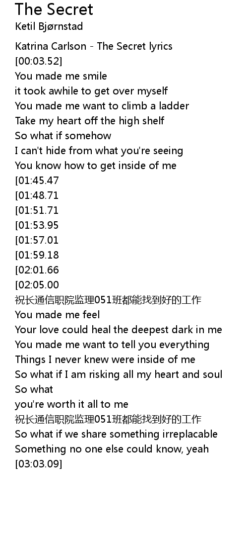 | [00:01.11] | Katrina Carlson - The Secret lyrics |