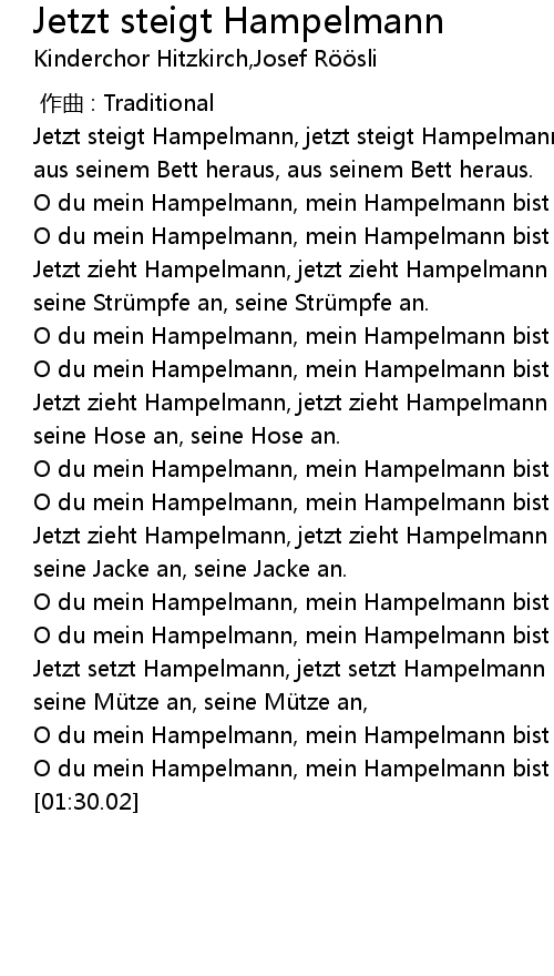 | [00:31.50] | O du mein Hampelmann, mein Hampelmann bist du. |