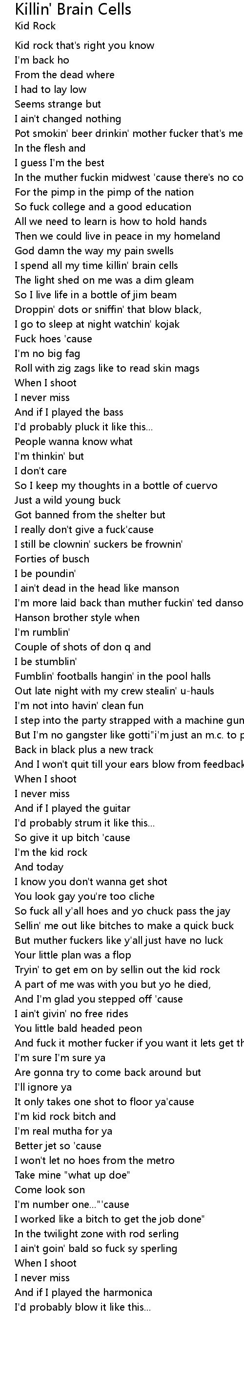 | Pot smokin' beer drinkin' mother fucker that's me | |