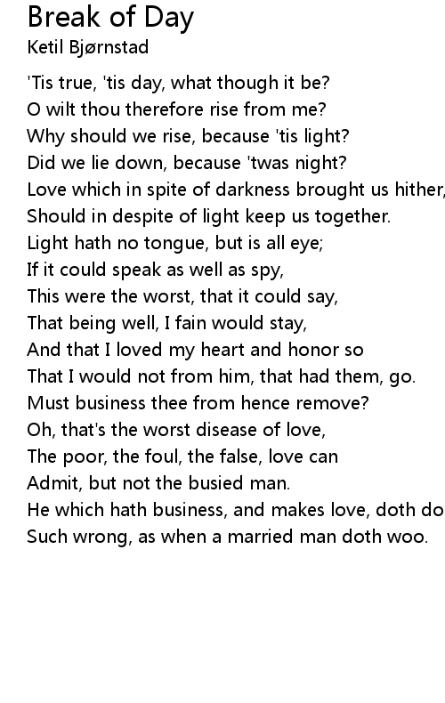 'Tis true, 'tis day, what though it be? |