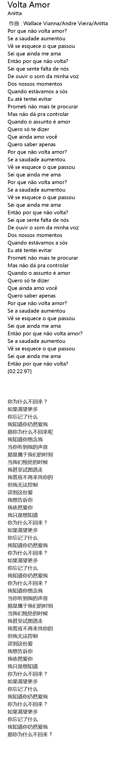 | [00:00.00] | zuò qǔ : Wallace Vianna Andre Vieira Anitta |