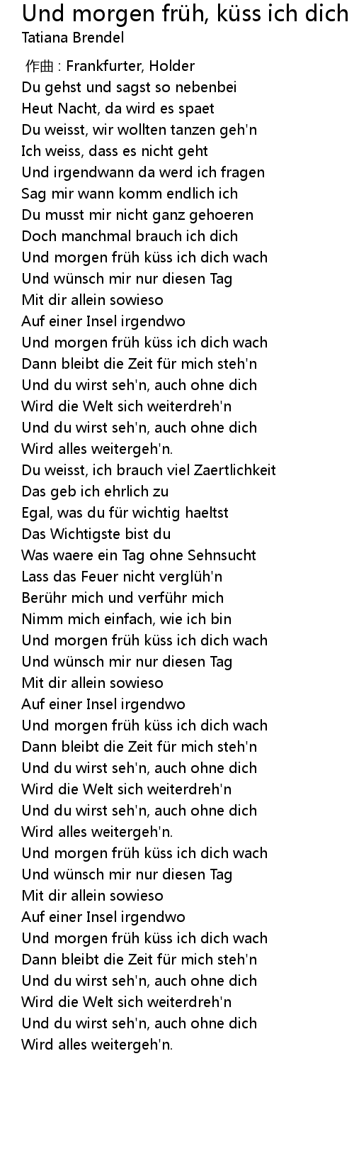 | [02:58.100] | Und morgen frü h kü ss ich dich wach |