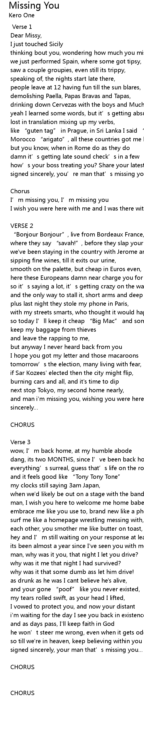 | signed sincerely, your man that' s missing you | |