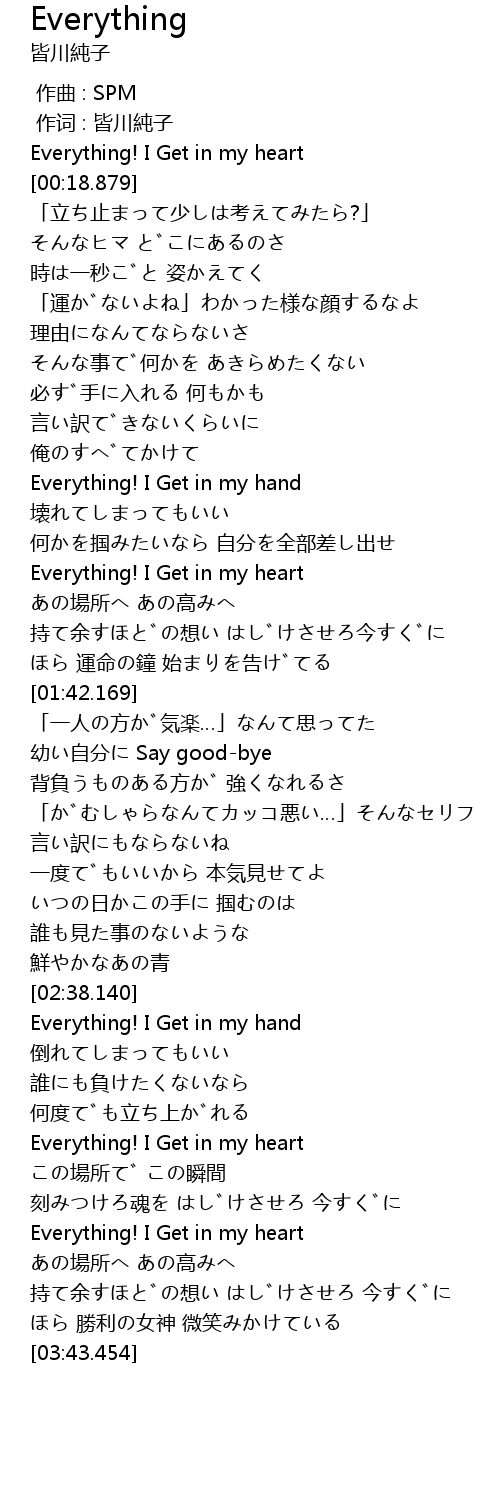 | [00:03.205] | Everything! I Get in my heart |