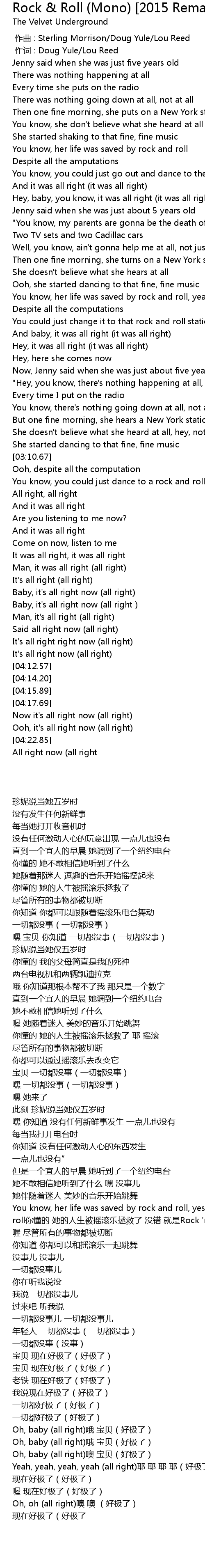 | [00:01.00] | 作词 : Doug Yule/Lou Reed |