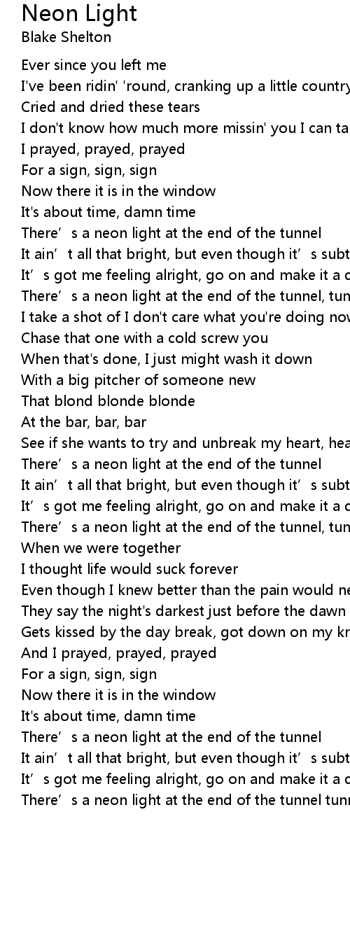 | There' s a neon light at the end of the tunnel tunnel tunnel |