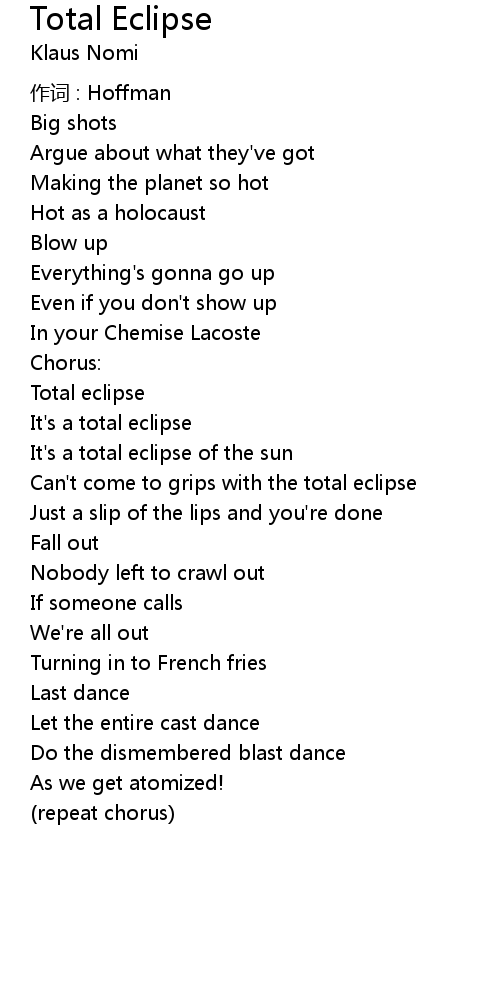| Song | Total Eclipse |