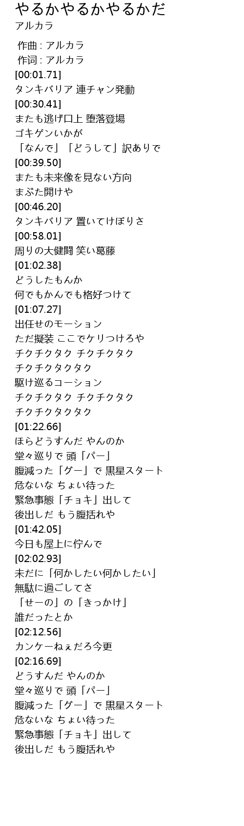 | [01:10.90] | ただ擬装 ここでケリつけろや |