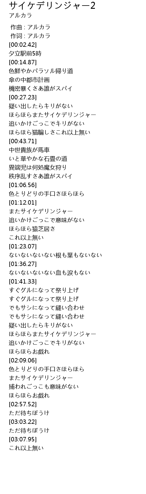| [01:57.60] | ほらほらまたサイケデリンジャー |