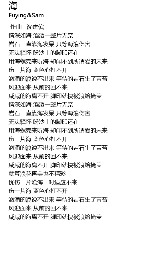 | [01:41.06] | 情深如海 滔滔一整片无奈 |