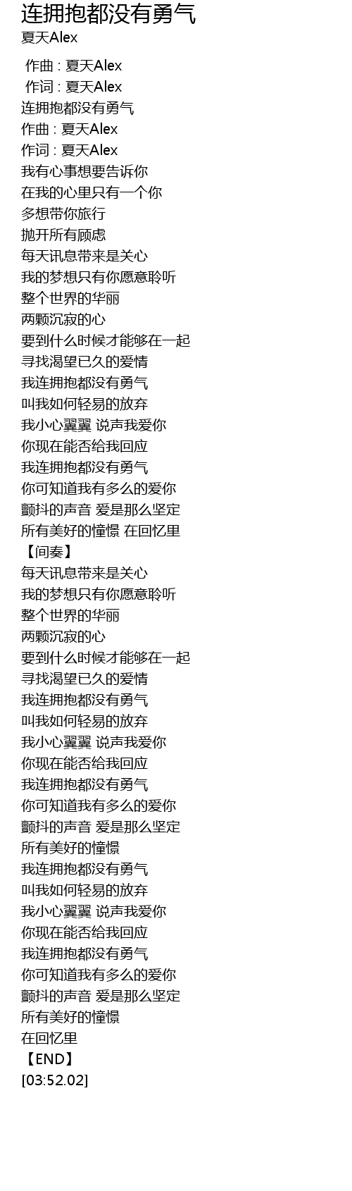 | [02:25.94] | 我连拥抱都没有勇气 |