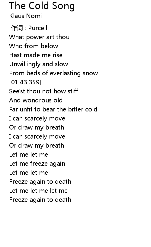 | Song | The Cold Song |