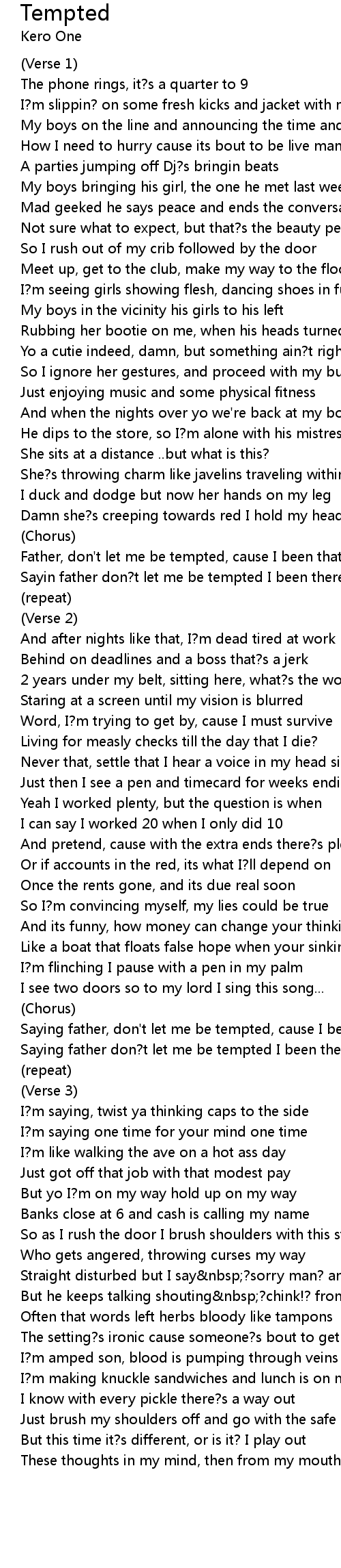 Sayin father don?t let me be tempted I been there before |