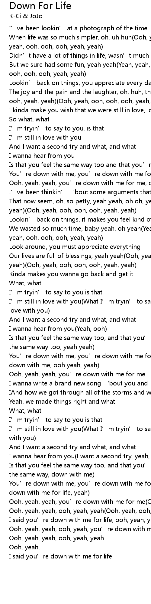 | Ooh, yeah, yeah, ooh, yeah, you' re down with me for life | |