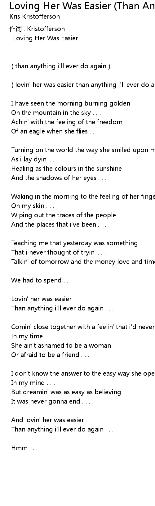 | lovin' her was easier than anything i' ll ever do again . . . | |