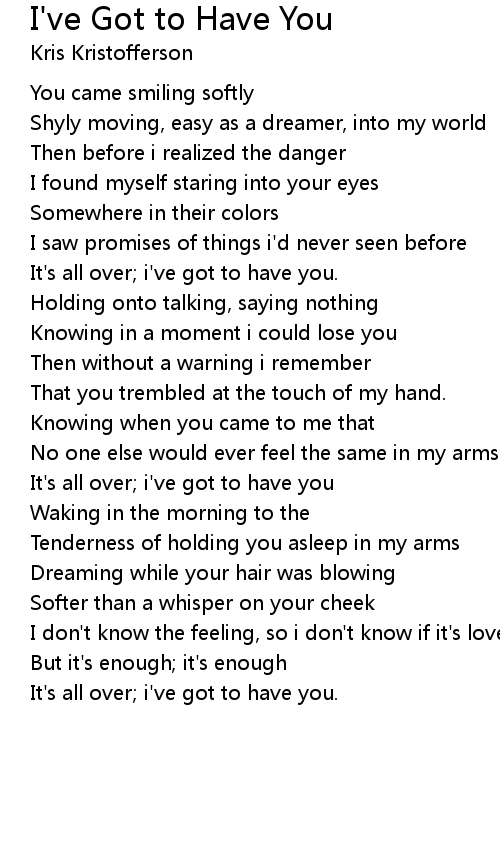 I've Got to Have You Lyrics