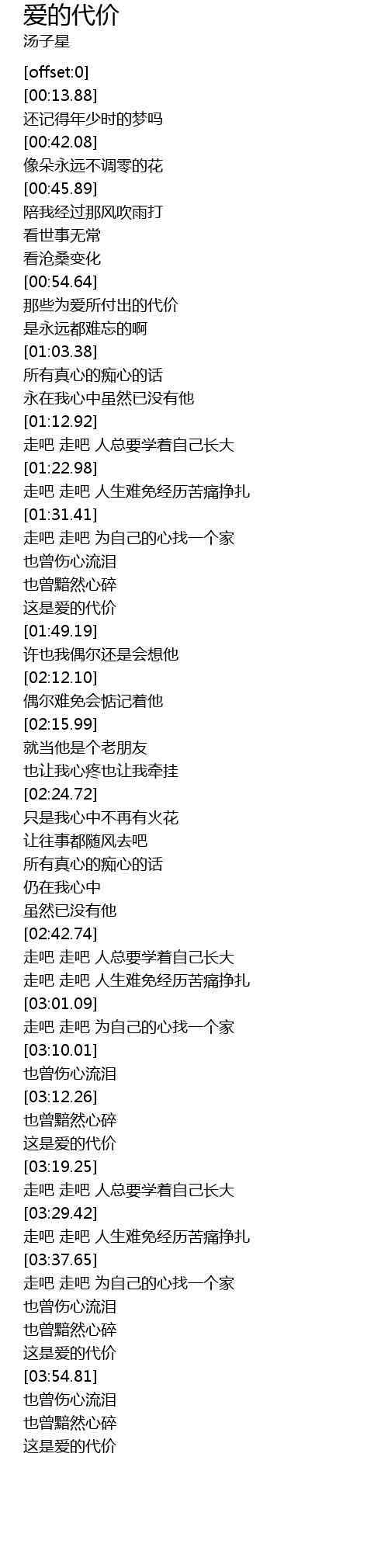 | [00:55.64] | nèi xiē wèi ài suǒ fù chū de dài jià |