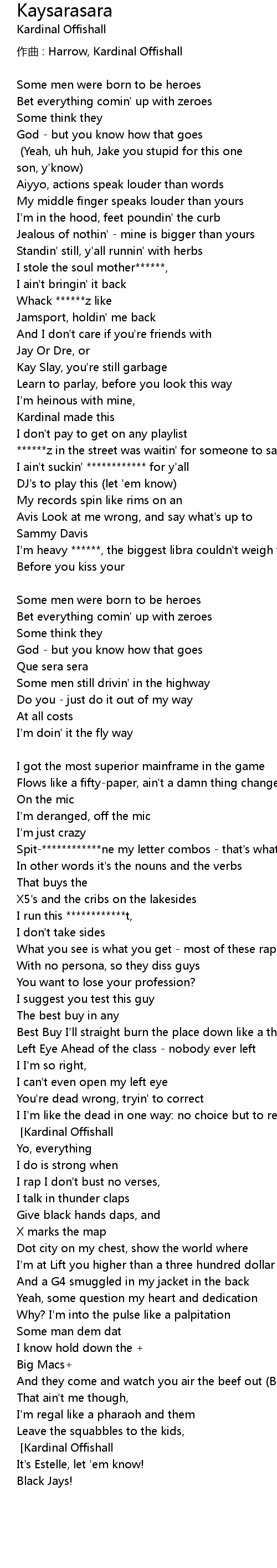 | Que sera sera Kardinal Offishall Yeah, uh huh, Jake you stupid for this one son, y' know | |