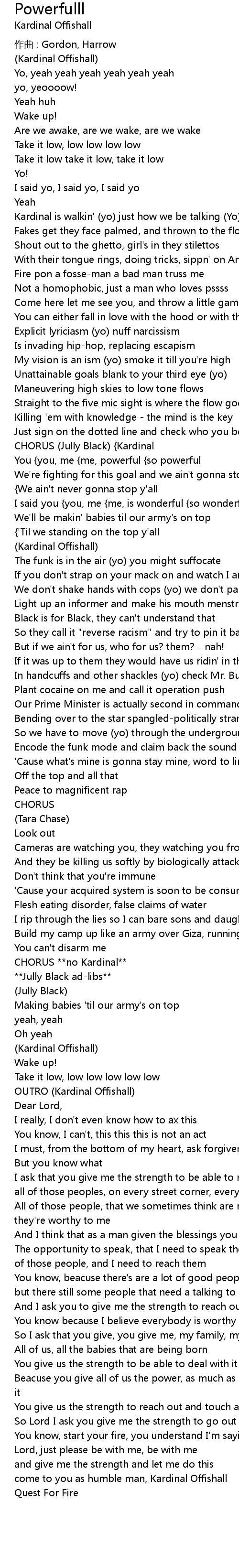 | Kardinal is walkin' (yo) just how we be talking (Yo) | |