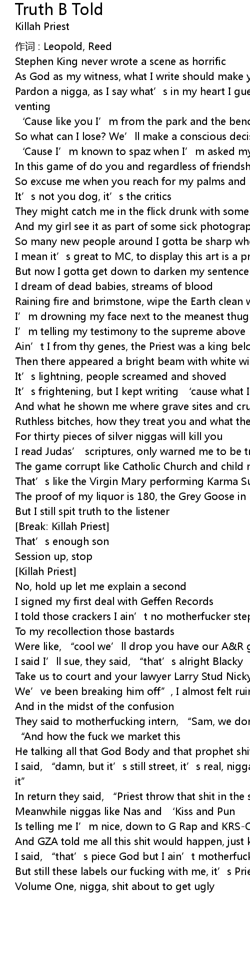 | [Break: Killah Priest] | |