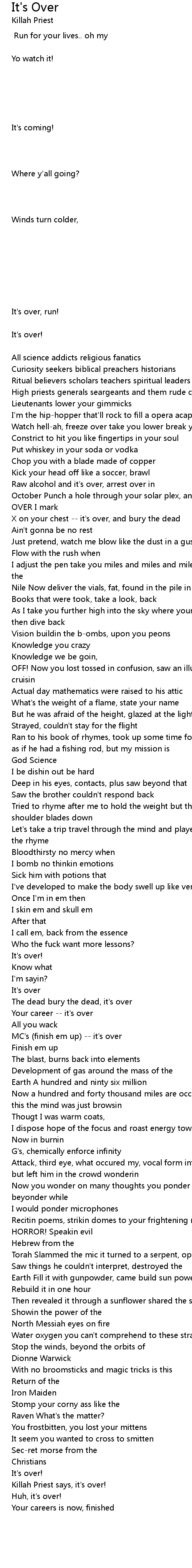 Killah Priest says, it's over! |