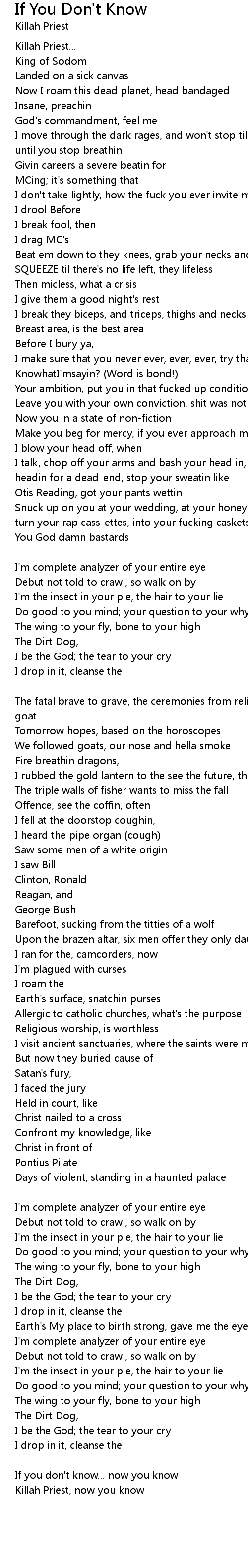 I move through the dark rages, and won't stop til we even, until you bleedin, until you stop breathin |