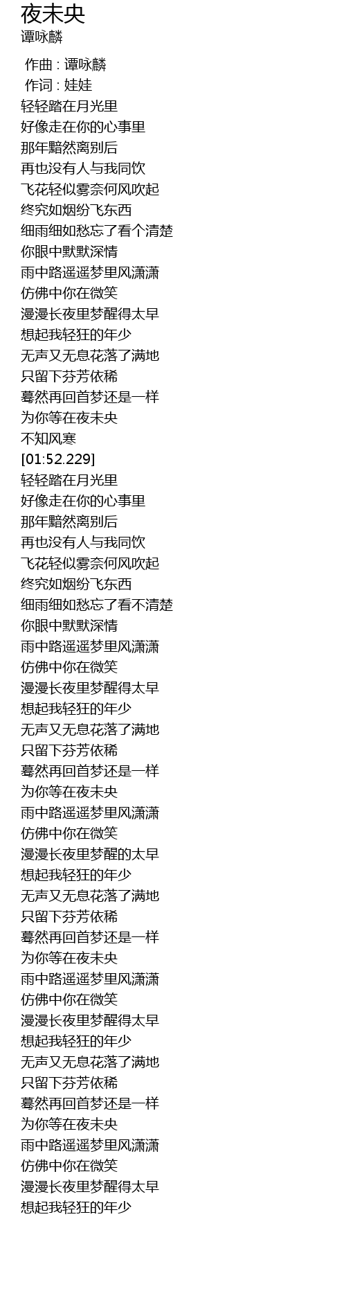 | [02:52.990] | 雨中路遥遥梦里风潇潇 |