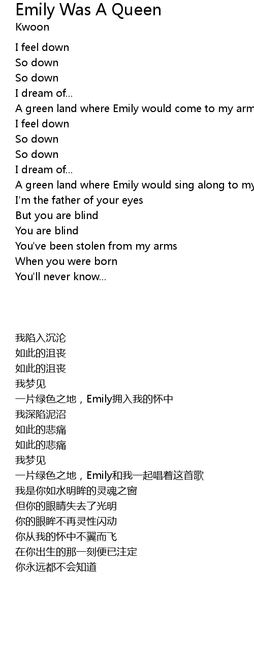| [02:12.02] | A green land where Emily would sing along to my song |