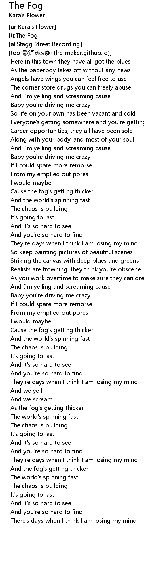 | [03:18.112] | They' re days when I think I am losing my mind |