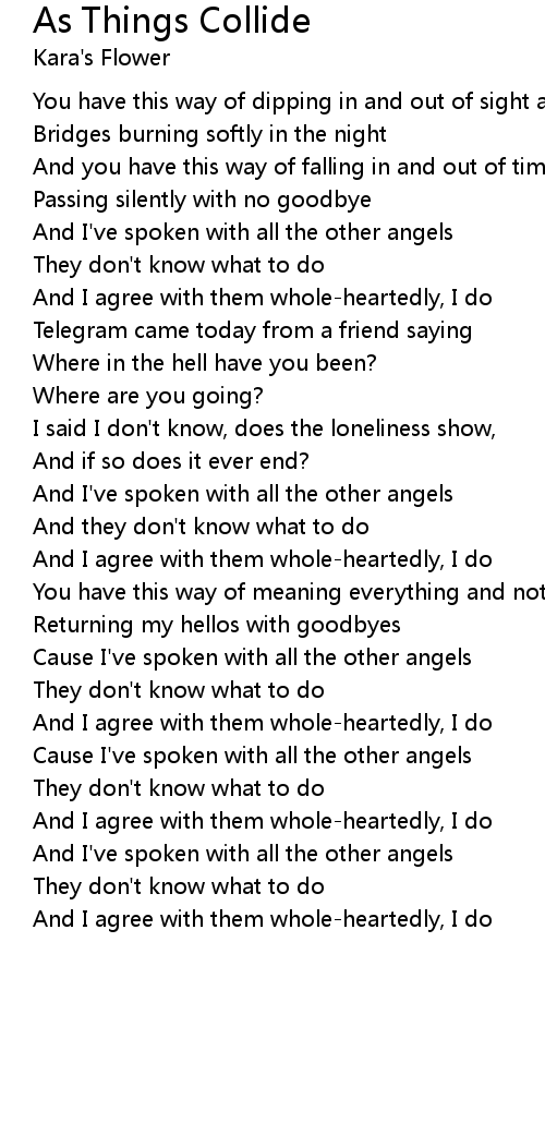 Cause I've spoken with all the other angels |