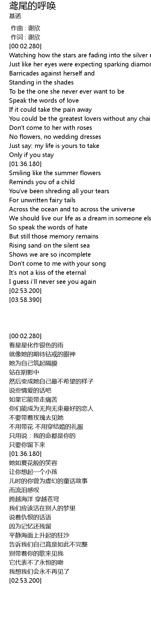 | [00:00.760] | zuò cí : xiè xīn |