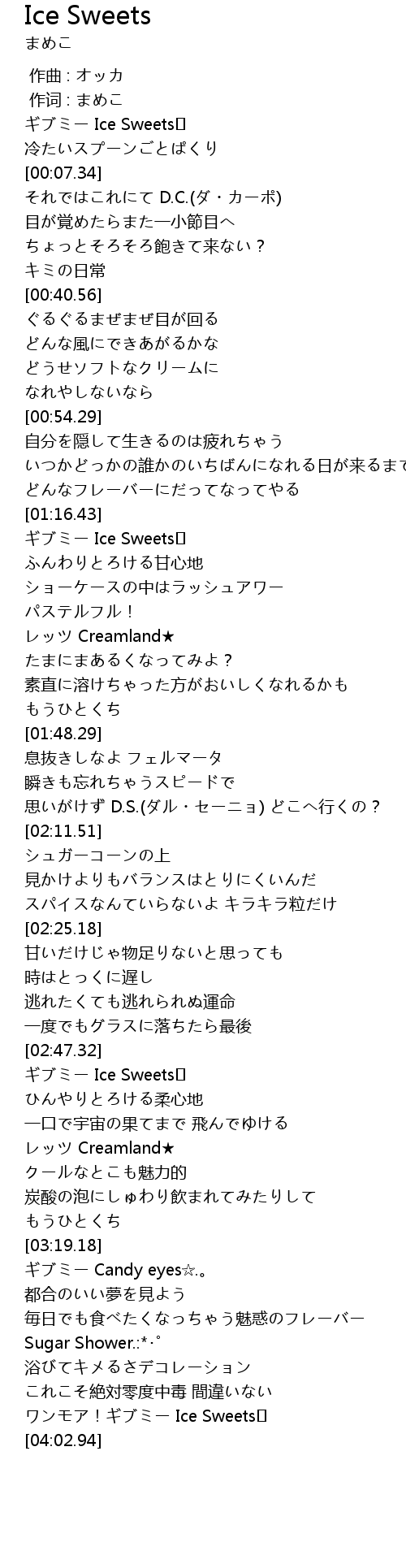 | [03:57.09] | ワンモア!ギブミー Ice Sweets♡ |