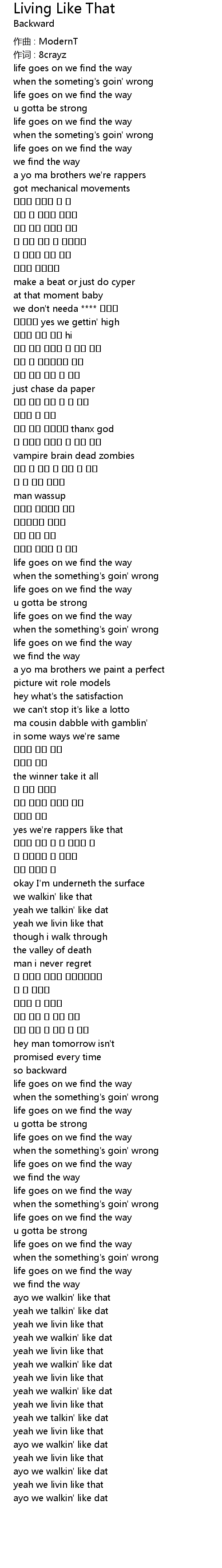 | 作词 : 8crayz | |