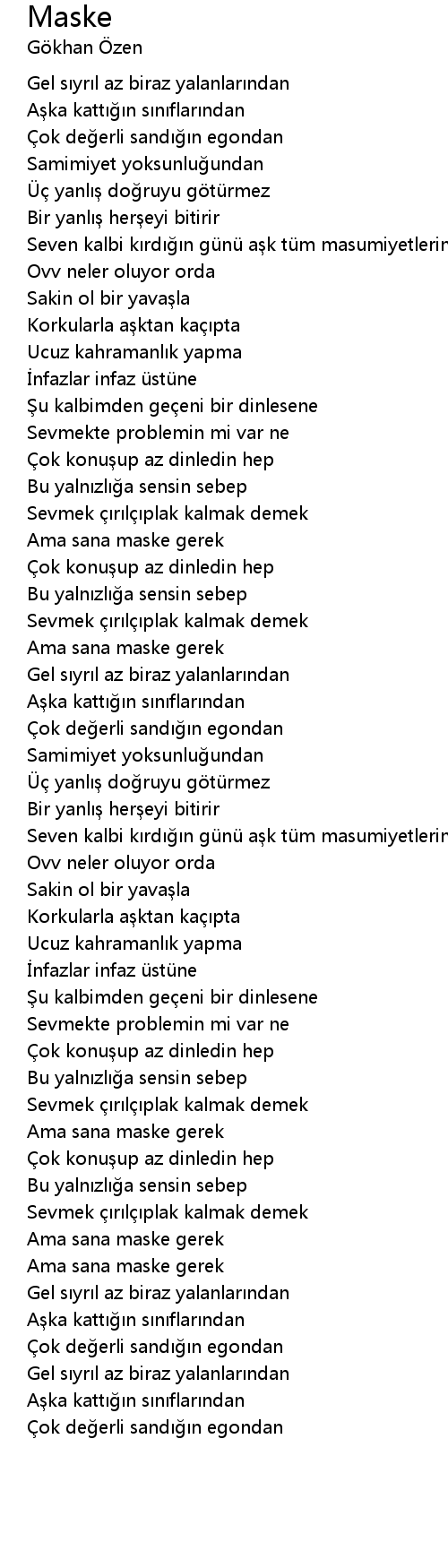 | [03:47.76] | Ama sana maske gerek |