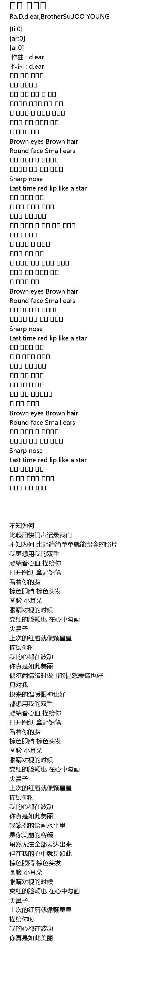 | [00:01.00] | 作词 : d.ear |