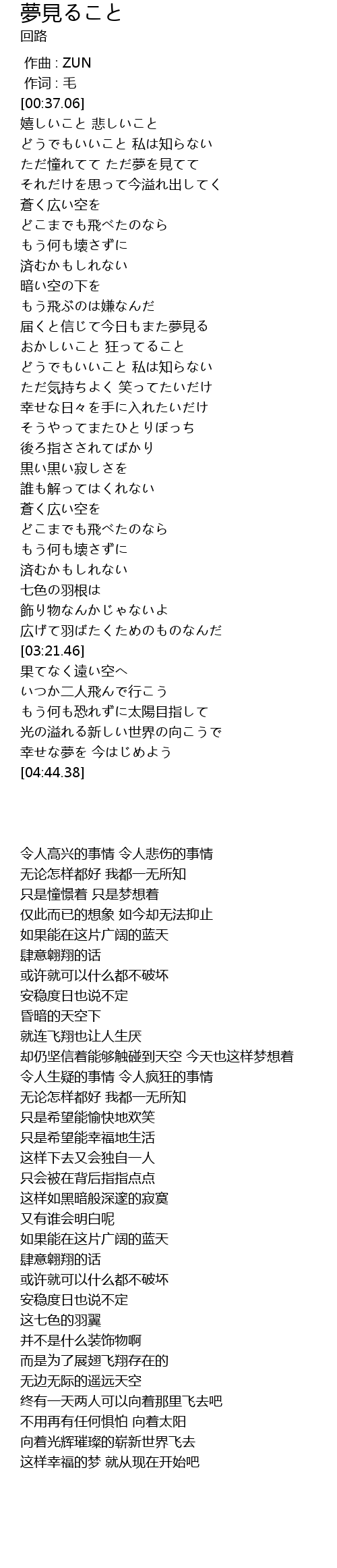 | [00:00.00] | zuo qu : ZUN |