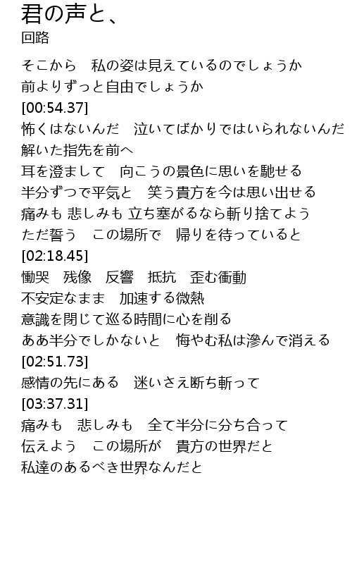 | [02:43.72] | ああ半分でしかないと 悔やむ私は滲んで消える |