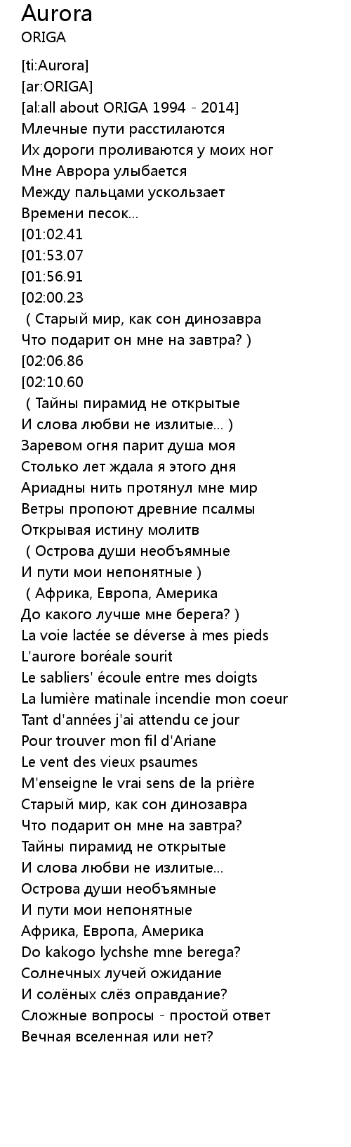 | [00:14.48] | Мне Аврора улыбaeтcя |