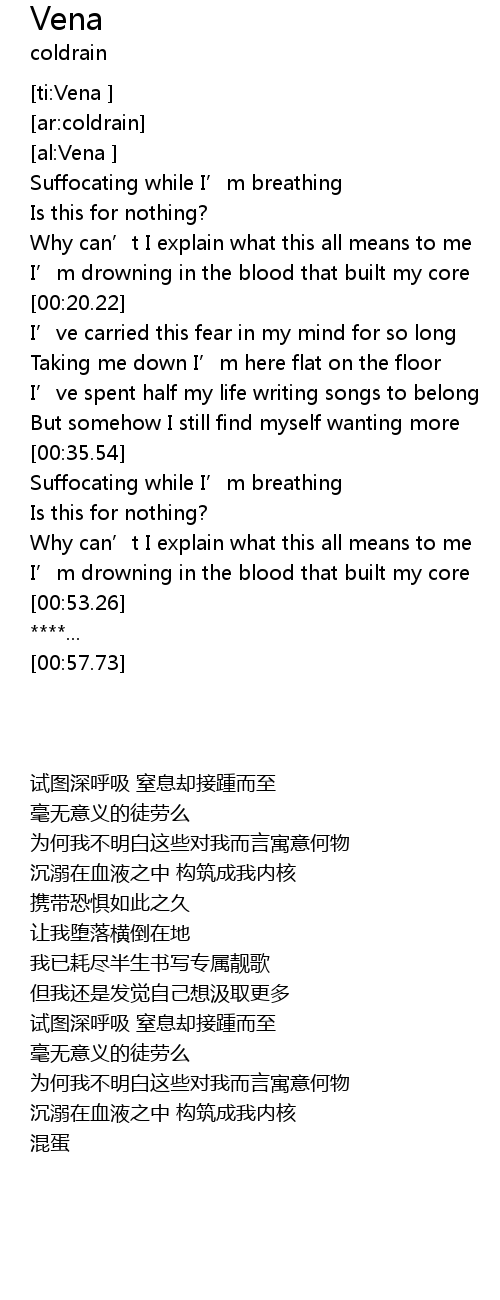 | [00:15.46] | I' m drowning in the blood that built my core |