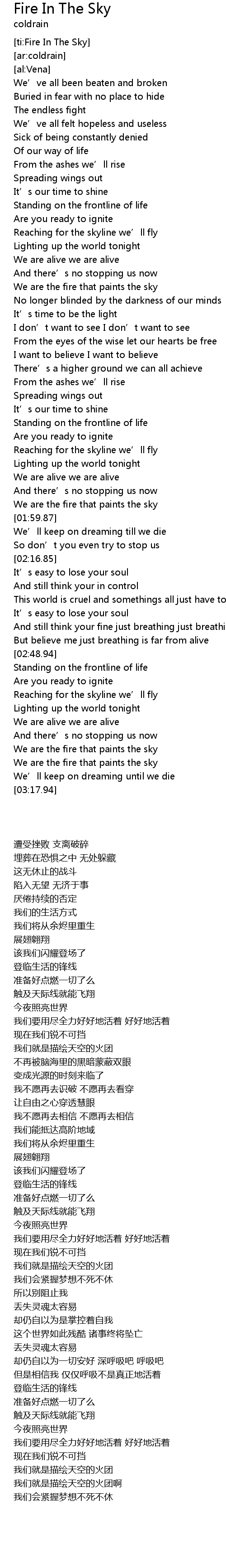 | [03:03.64] | We are the fire that paints the sky |