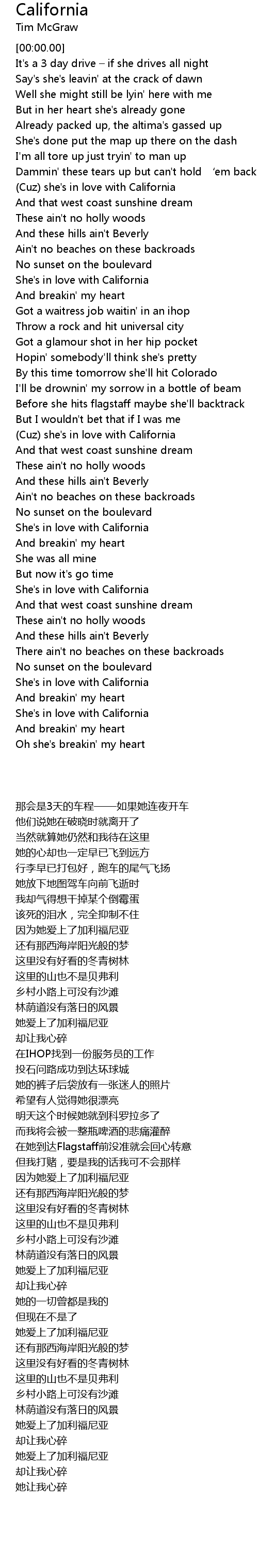 | [00:12.25] | It's a 3 day drive – if she drives all night |