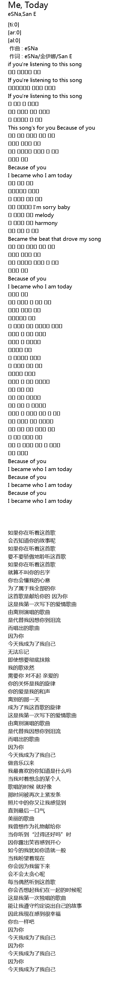 | [00:01.00] | 作词 : eSNa/金伊娜/San E |