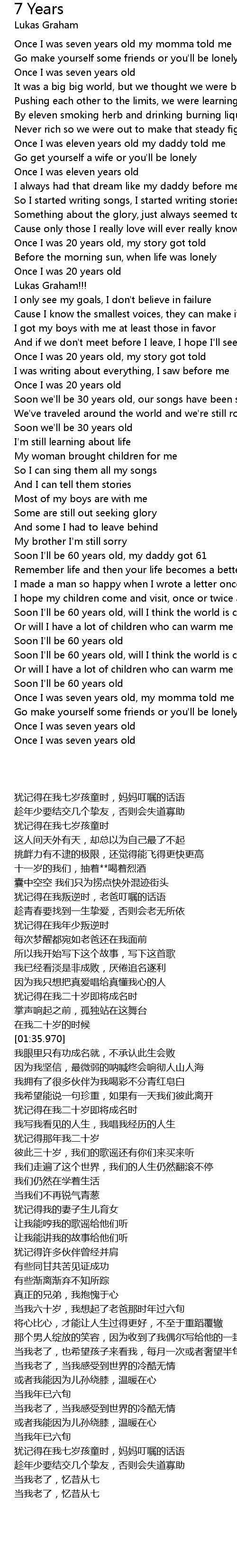 Once I was seven years old my momma told me |