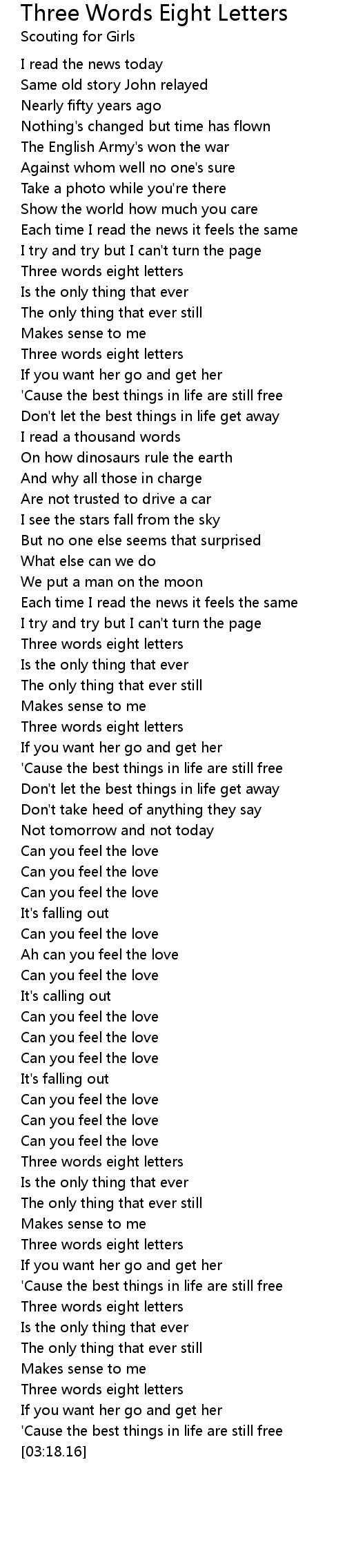 Three Words Eight Letters Lyrics