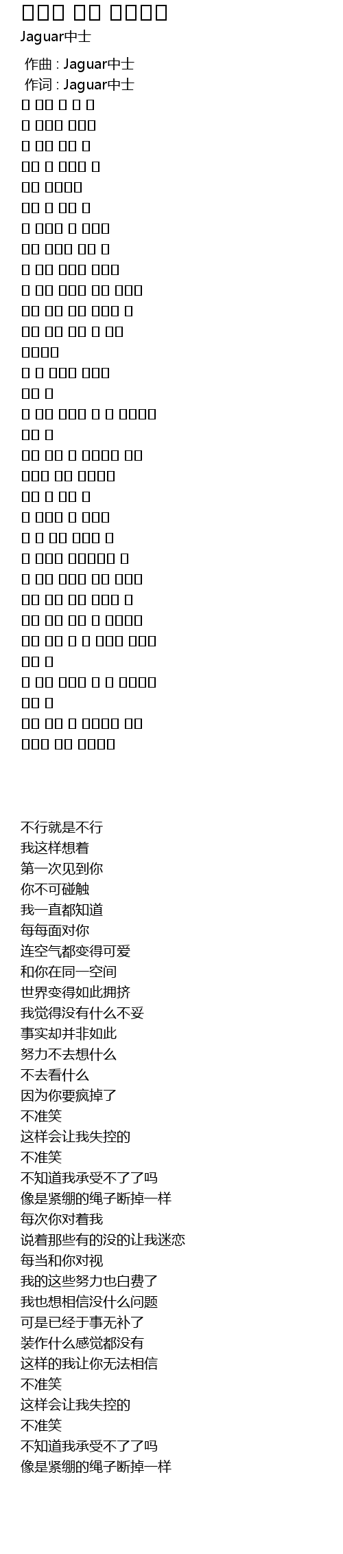 | [00:01.00] | 作词 : Jaguar中士 |