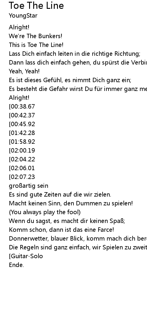 | [00:06.95] | This is Toe The Line! |