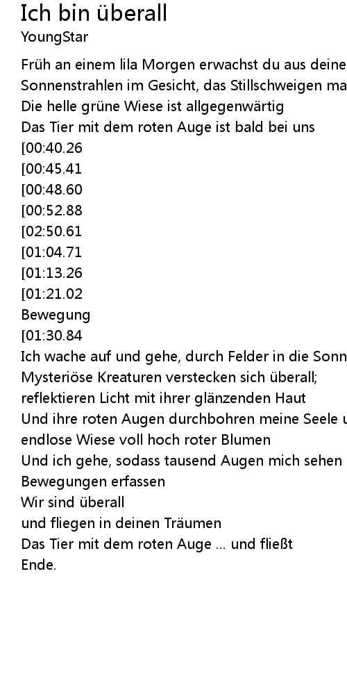 | [04:04.19] | Das Tier mit dem roten Auge ... und flie t |